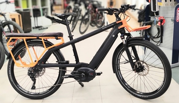 Longtail amb portapaquets llarg equipada amb manillar infantil i estreps per als peus. S'hi poden muntar també dues cadiretes infantils o barres laterals Riese & Müller. 12000 km i molt ben conservada. Motor Bosch Performance CX i bateria de 500Wh. Transmissió nova. Preu: 1700€